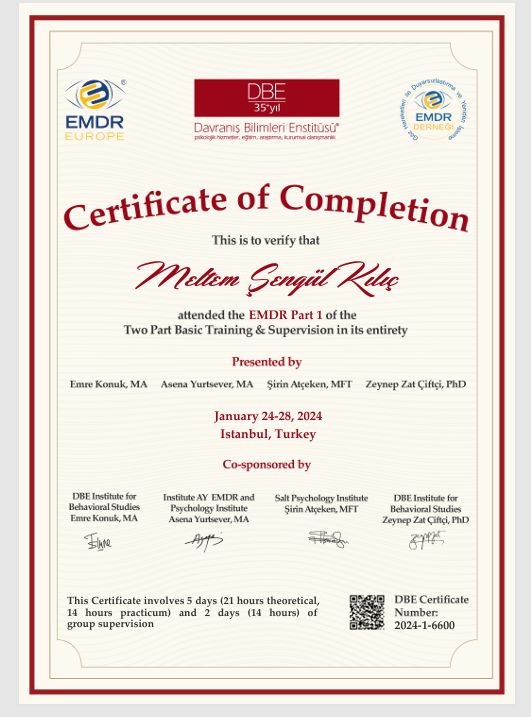Hayatımın oldukça zor bir döneminden geçerken, geçmiş travmalarımın ve yaşadığım sıkıntıların etkisiyle baş etmekte zorlanıyordum. Uykusuzluk sorunları da yaşam kalitemi iyice düşürmüştü. Bu süreçte profesyonel bir destek almam gerektiğini fark ettim ve Meltem Hoca ile tanıştım. Kendisiyle şematerapi ve EMDR çalışıyoruz. İlk günden itibaren yaklaşımı çok ilgili, samimi ve güven vericiydi. Seanslarımızda kendimi çok rahat hissettim ve zamanla büyük bir fark hissetmeye başladım. Meltem Hoca sayesinde kendime daha şefkatli yaklaşmayı, duygularımı anlamayı ve geçmişin yükünü hafifletmeyi öğreniyorum. Ayrıca, kendisinin bütün etik kurallara özenle dikkat etmesi ve işini büyük bir profesyonellikle yapması da bana güven verdi. Bugün geldiğim noktada kendimi çok daha güçlü ve iyi hissediyorum. Bu süreçte yanımda olduğu ve bana içtenlikle destek verdiği için Meltem Hoca’ya minnettarım ve kesinlikle Meltem Hocayla çalışmanızı öneriyorum.